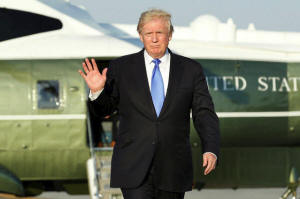 President Donald Trump waves before his departs from Newark Liberty
