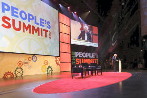 Senator Bernie Sanders (I-VT) speaks at the "People's Summit", an