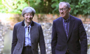 Britain's Prime Minister Theresa May and her husband Phillip (R)