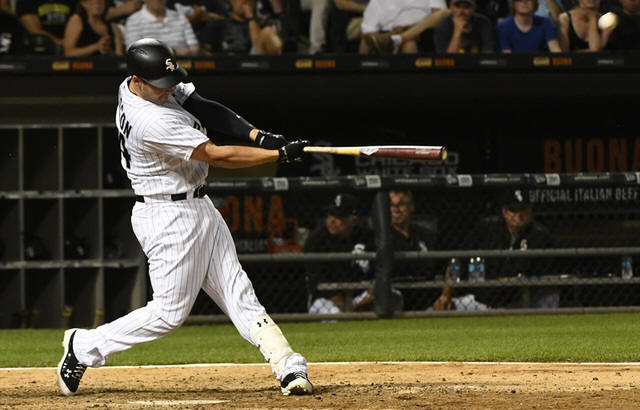 White Sox designated hitter Matt Davidson (24) hits a home run