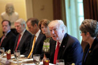 President Donald Trump attends a lunch meeting with members of