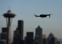 A drone hovers at