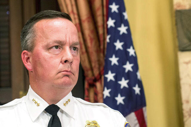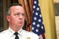 Interim Police Commissioner Kevin Davis looks on during a news
