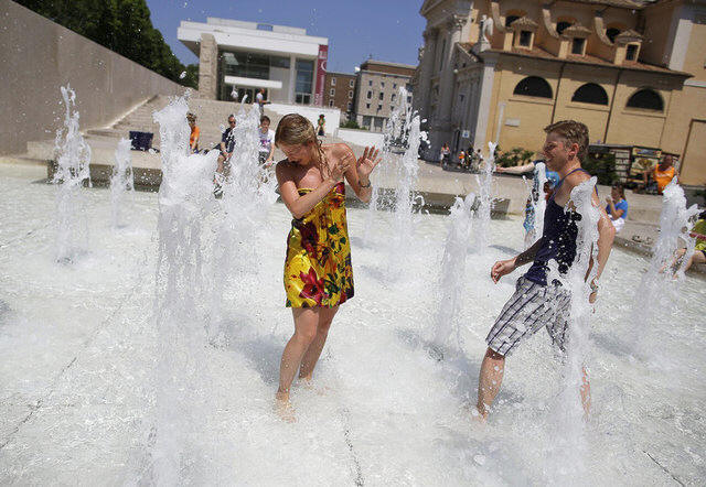 Tourists in the fountains and the flowerbeds" and "Monuments
