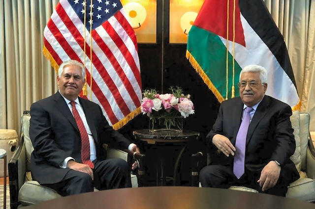 U.S. Secretary of State Rex Tillerson (L) meets with Palestinian