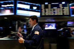 Traders work on the floor of the New York Stock Exchange (NYSE) in