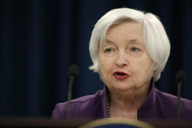 Federal Reserve Board Chairwoman Janet Yellen holds a news