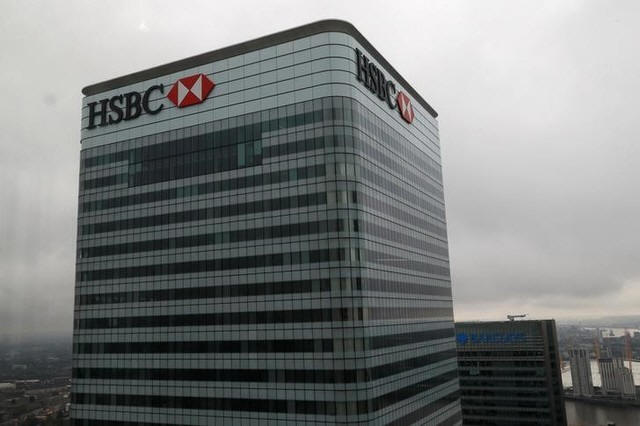 A HSBC and a Barclays bank building is seen at Canary Wharf in