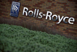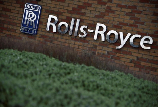 A Rolls-Royce logo is seen at the company aerospace engineering and