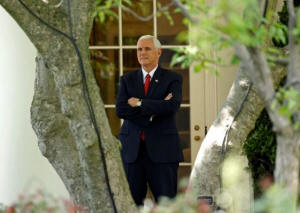 U.S. Vice President Mike Pence watches as U.S. President Donald