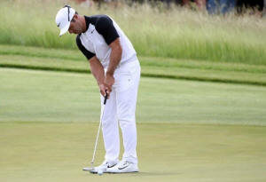 14th, his fifth, into the deep fescue and needed five more strokes
