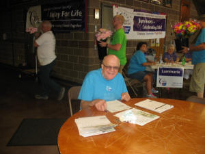 Handing out survivor's shirts was Tonita Reifsteck, who has been