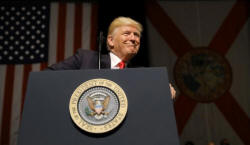 U.S. President Donald Trump arrives to deliver a speech on US-Cuba