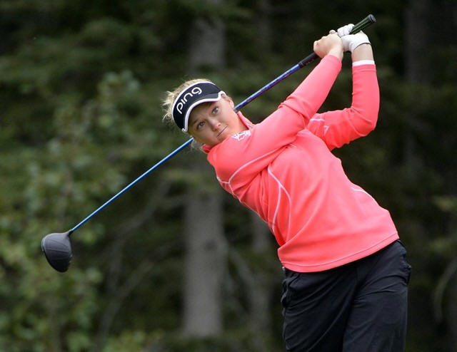 Brooke Henderson drives off the fourth tee box during the third