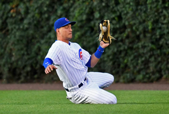 center fielder Albert Almora Jr. (5) dives to catch a