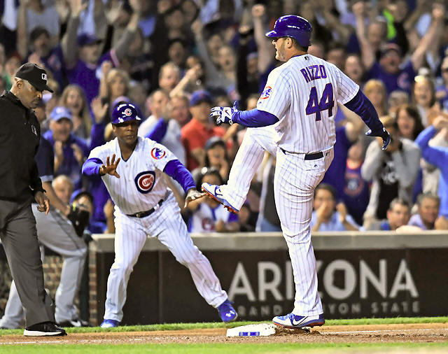 Cubs first baseman Anthony Rizzo (44) reacts after hitting a