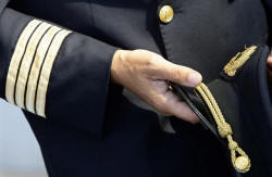 An Alitalia pilot holds