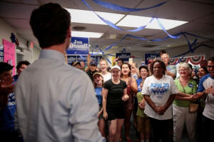 Democratic candidate Jon Ossoff greets supporters while campaigning