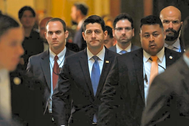 Speaker of the House Paul Ryan walks through National Statuary Hall