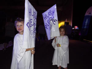 The lights went down, and the Hush Angels appeared, asking everyone to spend the
