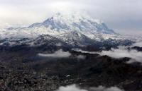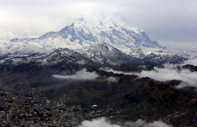 Illimani mountain is seen after a snowstorm, as pictured from El