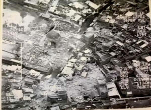 the air that appeared to show the mosque and minaret largely flattened