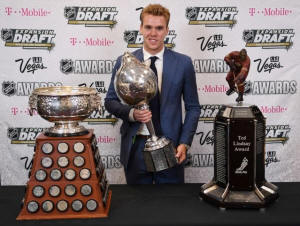 Edmonton Oilers forward Connor McDavid poses for a photo with the