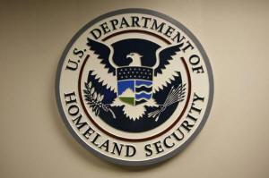 Homeland Security emblem is pictured at the National Cybersecurity &