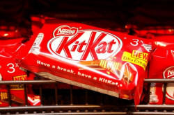 A Kitkat chocolate bar is pictured in the supermarket of Nestle