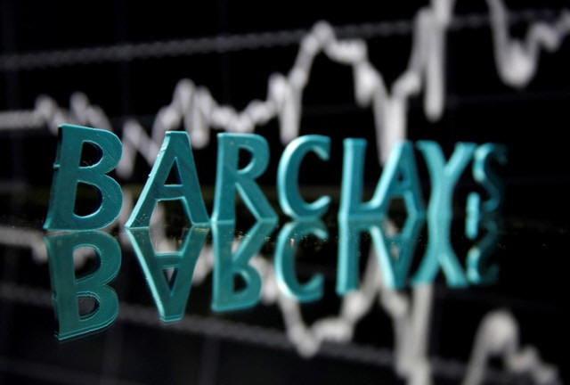 The Barclays logo is seen in front of displayed stock graph in this