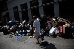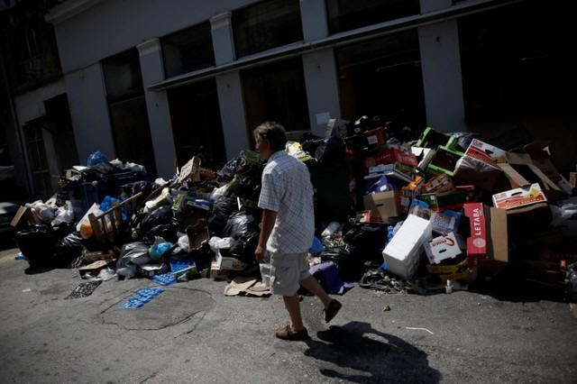 Pensioner Fotini Papadaki held her nose as she added her own small