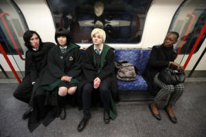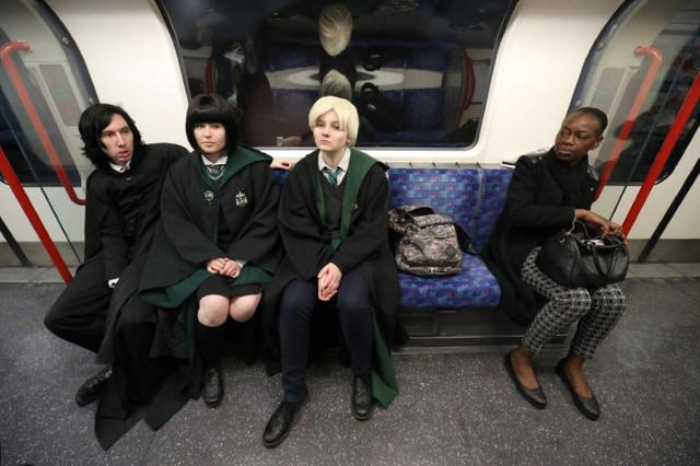 Goralik travel by tube dressed in Harry Potter themed costumes,