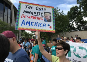 A protester against the Texas state law to punish "sanctuary cities"