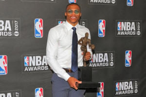After Westbrook was presented with the Maurice Podoloff Trophy by