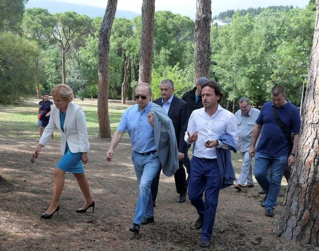 Vladimir Putin, head of Crimea Sergei Aksyonov and Artek camp's
