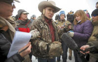 Arizona cattle rancher LaVoy Finicum talks to the media at the