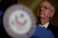 Senate Majority Leader Mitch McConnell speaks to the media about
