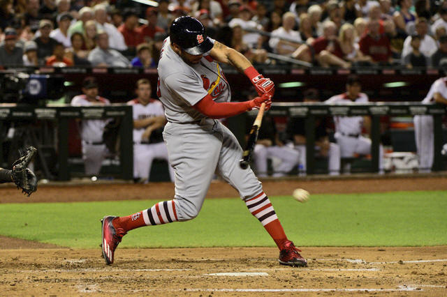 Cardinals left fielder Tommy Pham (28) singles in the fourth