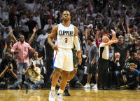 Clippers guard Chris Paul (3) reacts after he scores a basket