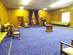 Moving out of the relaxation room, Reichart led the tour on to the large meeting hall and explained that the placement of all the furniture within the room is significant to the organization. He explained that this larger room is used for more formal meetings and larger attendance. Regular meetings of the membership are held in a smaller room in another part of the building.