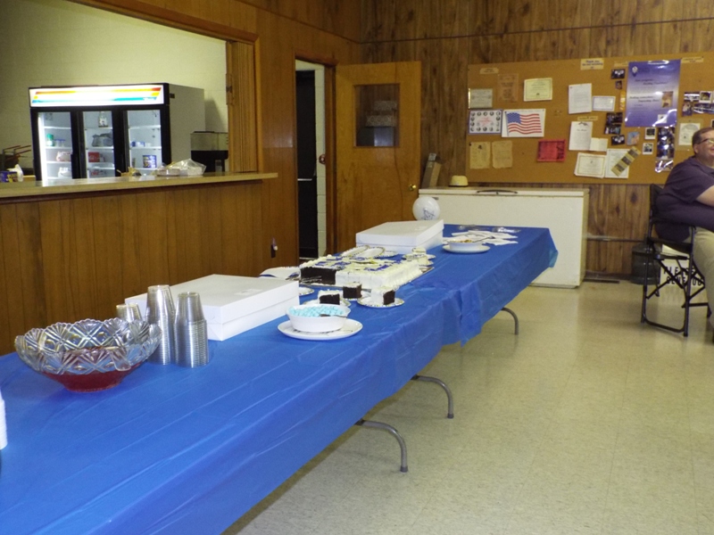 In the banquet hall, cake and punch were being served, and several local members were enjoying spending time with guests and thanking them for joining in their celebration.