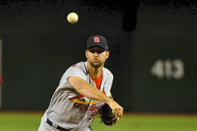 Cardinals starting pitcher Adam Wainwright (50) pitches during the