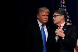 U.S. President Donald Trump talks with Energy Secretary Rick Perry