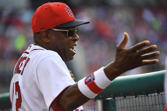Nationals manager Dusty Baker (12) reacts to being thrown out of