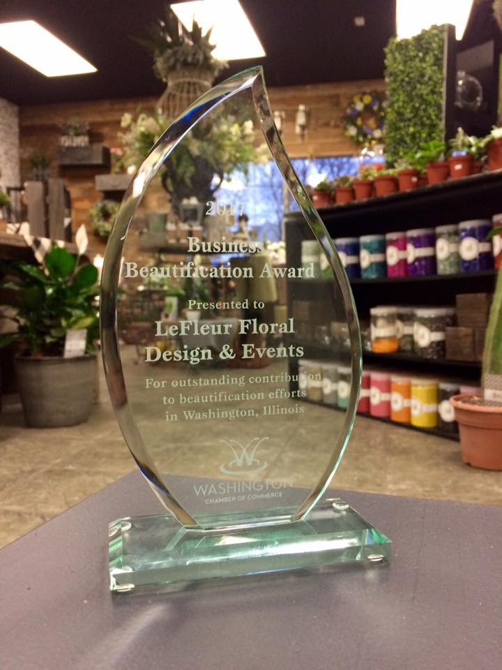 [March 01, 2017]   WASHINGTON -  LeFleur Floral Design & Events, owned and operated by Amy (Rohrer) and Brent Morgan recently received the 2017 Washington, Illinois Beautification Award at the Annual Washington Day Banquet.