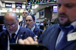 Traders work on the floor of the New York Stock Exchange (NYSE) in
