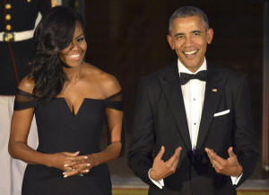 Barack Obama and the former first lady, Michelle Obama, with one volume