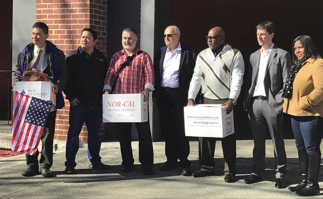 Kurt Ho, 58, a laid off systems administrator, carried a box of his