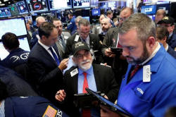 Traders work on the floor of the New York Stock Exchange (NYSE) in