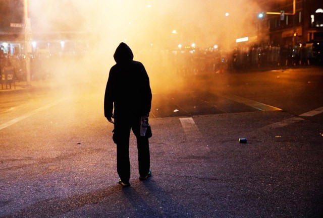 Baltimore, Maryland April 28, 2015, as crowds protest the death of